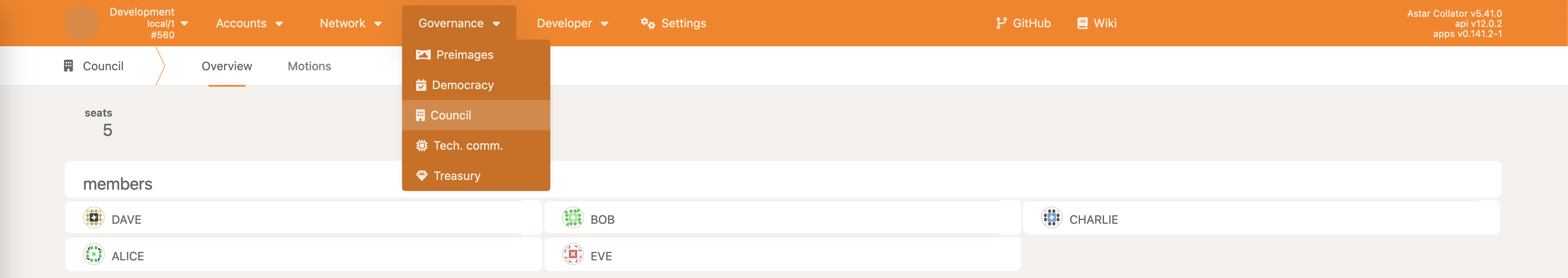 Unlike for the Council and the Technical Committee, polkadot-js apps does not provide a neat interface for the Community Council. This is because the original Polkadot’s Governance V1 only had two collectives - Council and Tech committee.