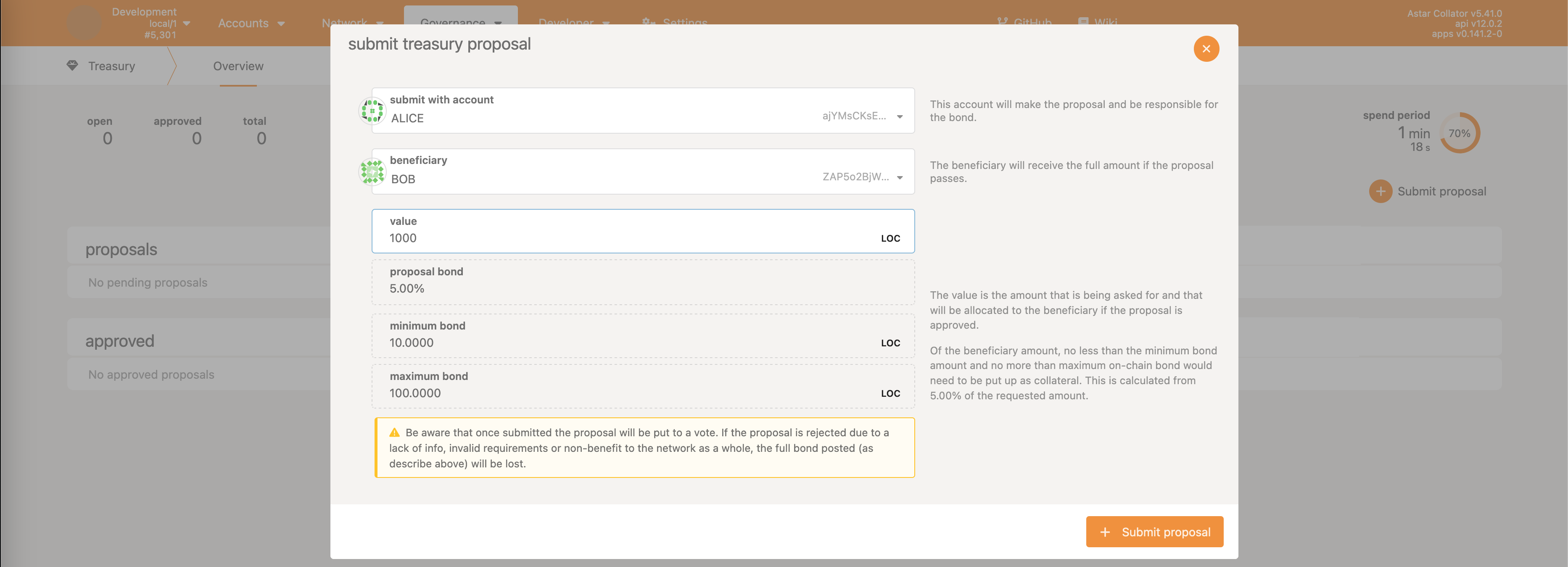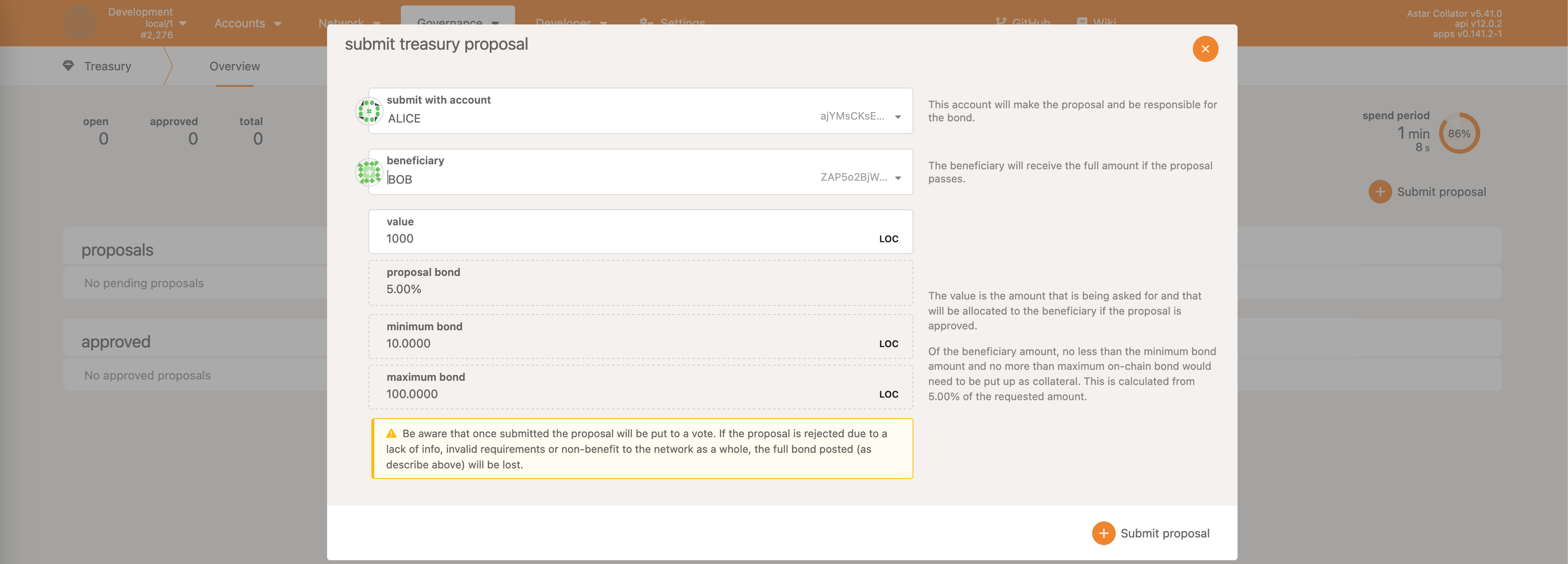 • Treasury->approveProposal - approve the treasury spending proposal
