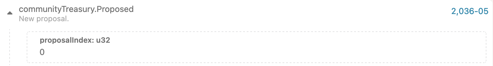 • CommunityTreasury->proposeSpend - proposes the spending of the community treasury funds (requires a deposit)