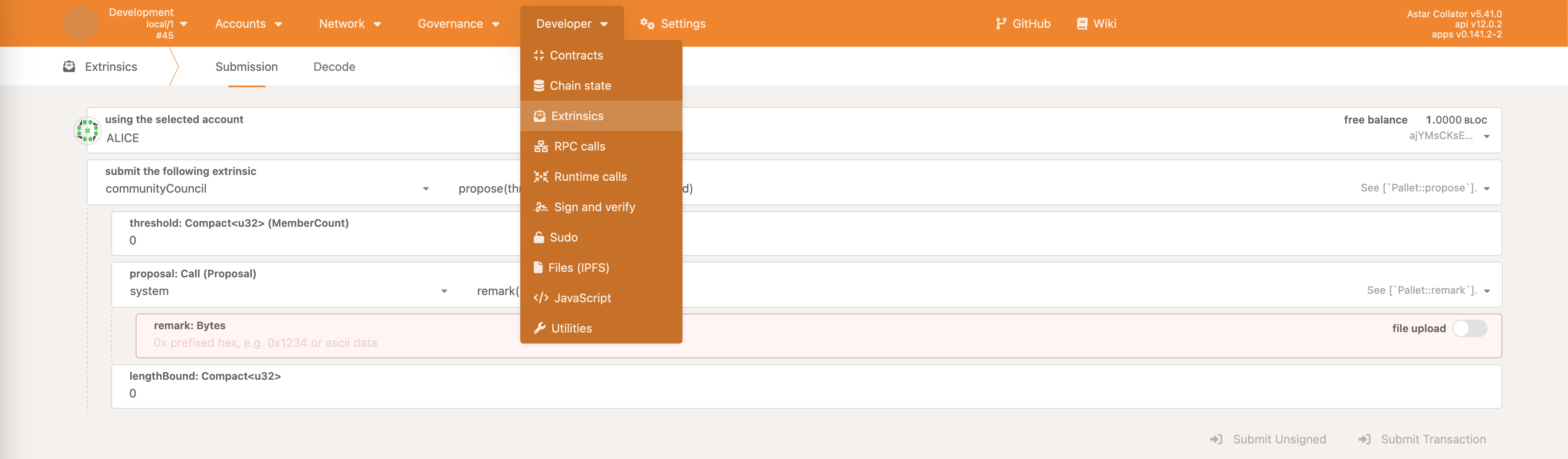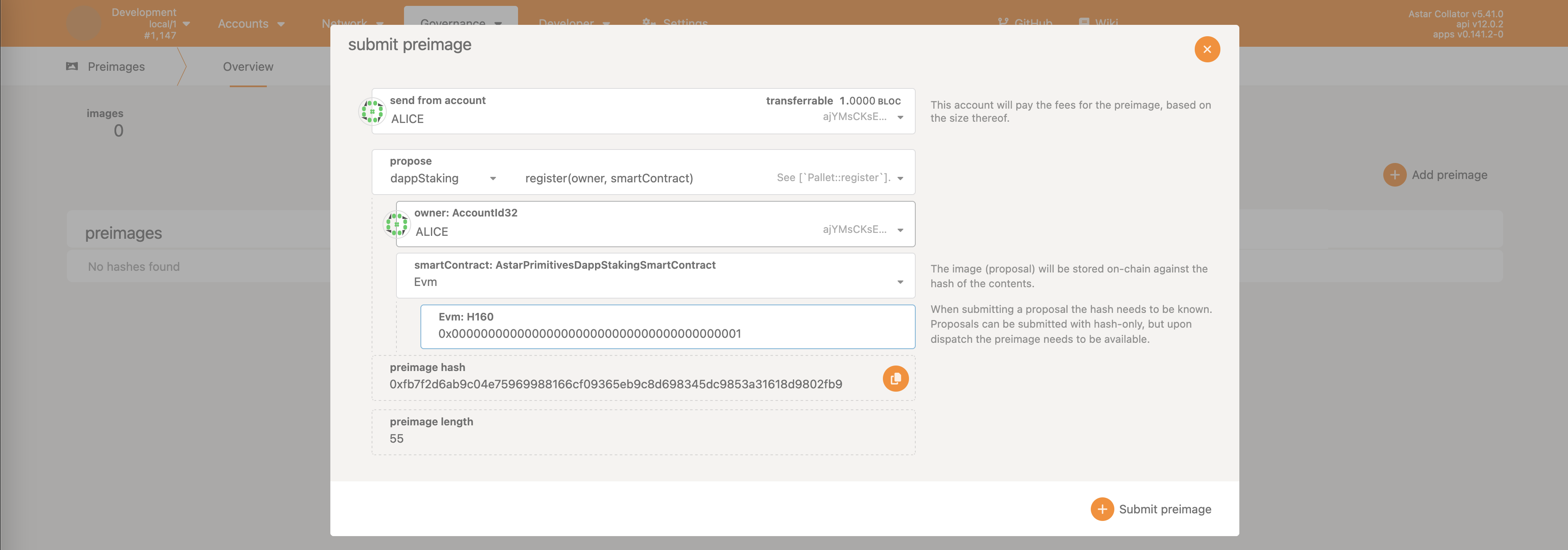 All of the examples below were done on a local test network which can be easily started by downloading Astar binary from the official releases (or building it manually), and starting it as ./astar-collator --dev --tmp.