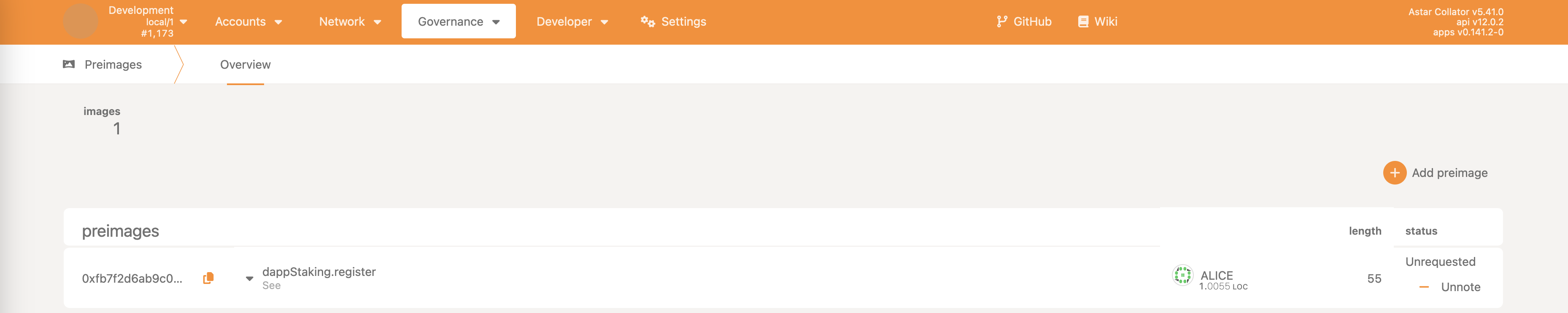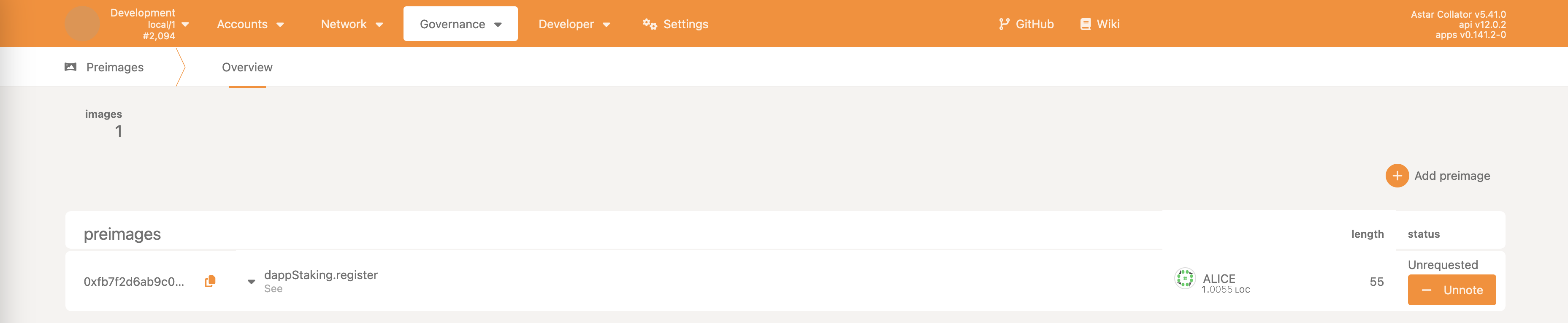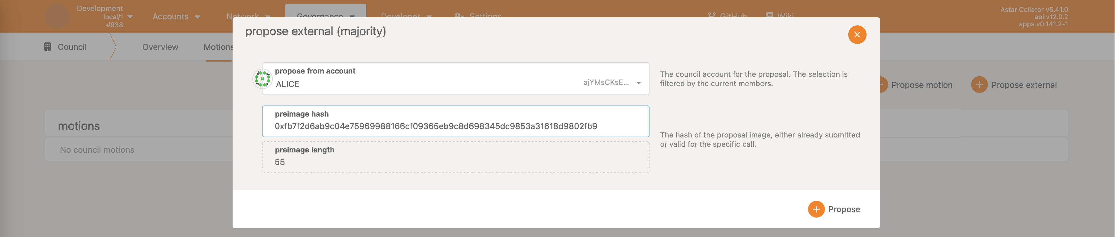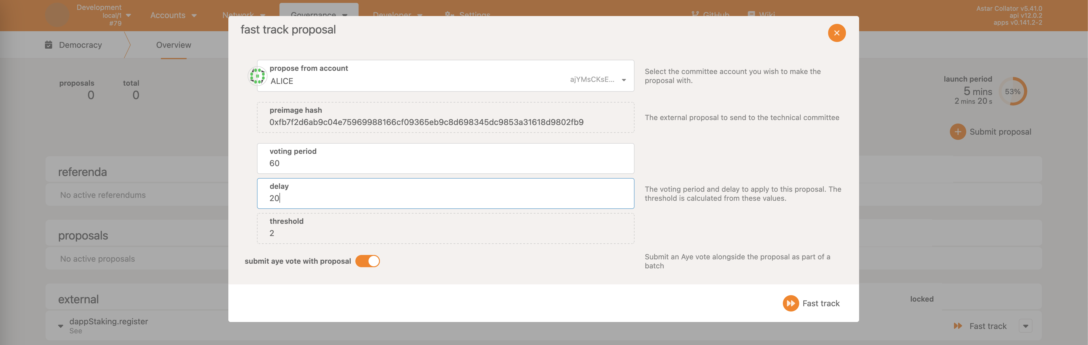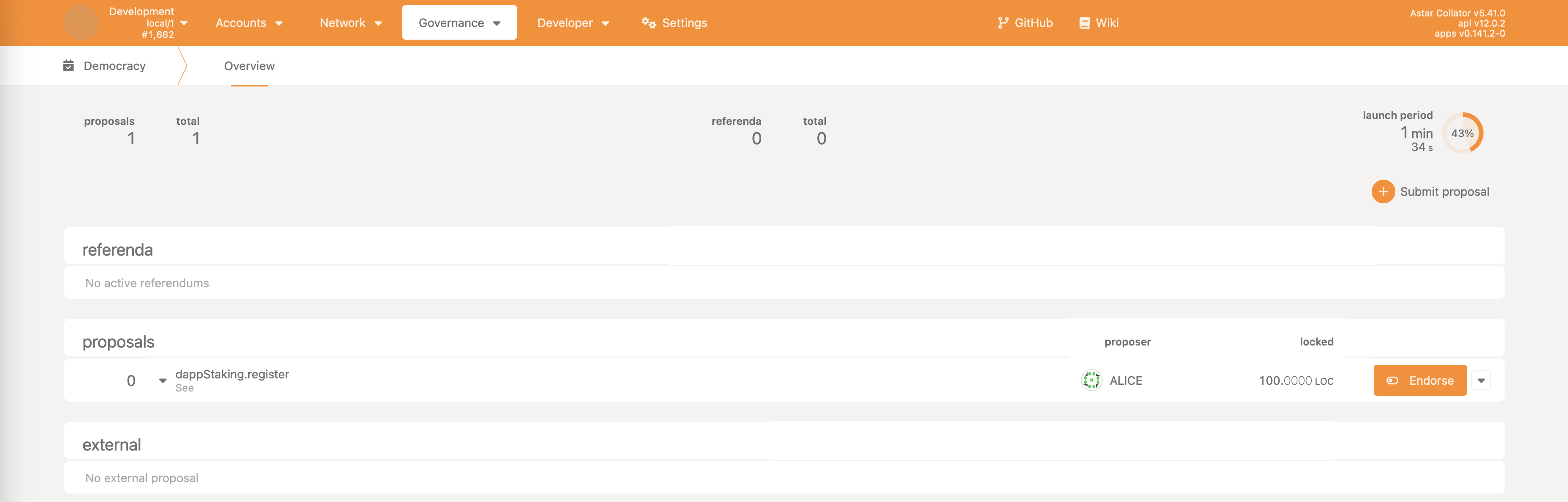 • Democracy->propose - make a proposal, reserving some ASTR as the deposit