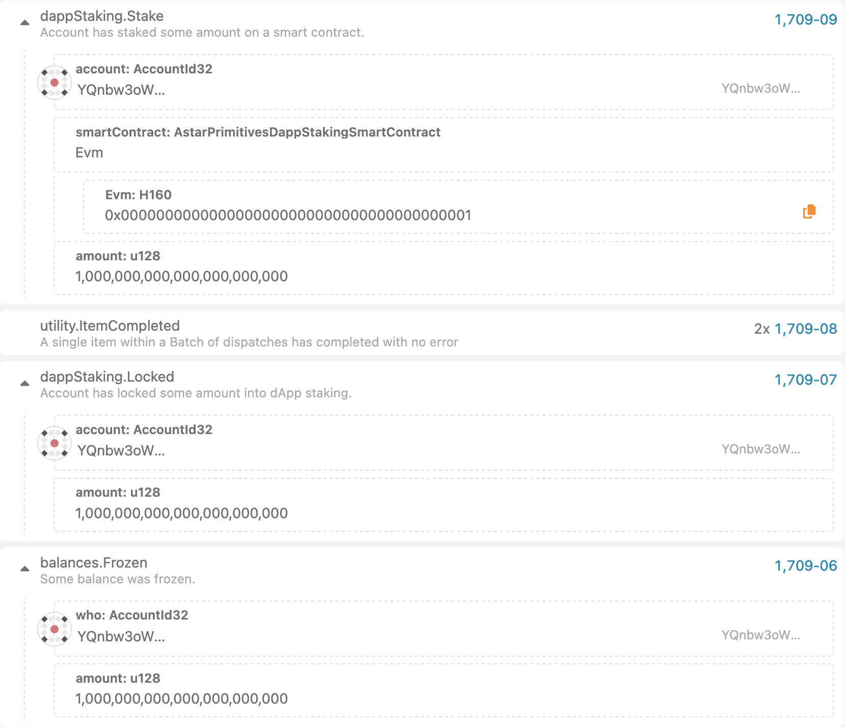 • dappStaking -> lock/stake - this will lock 1000 LOC tokens & immediately stake them on a dApp
