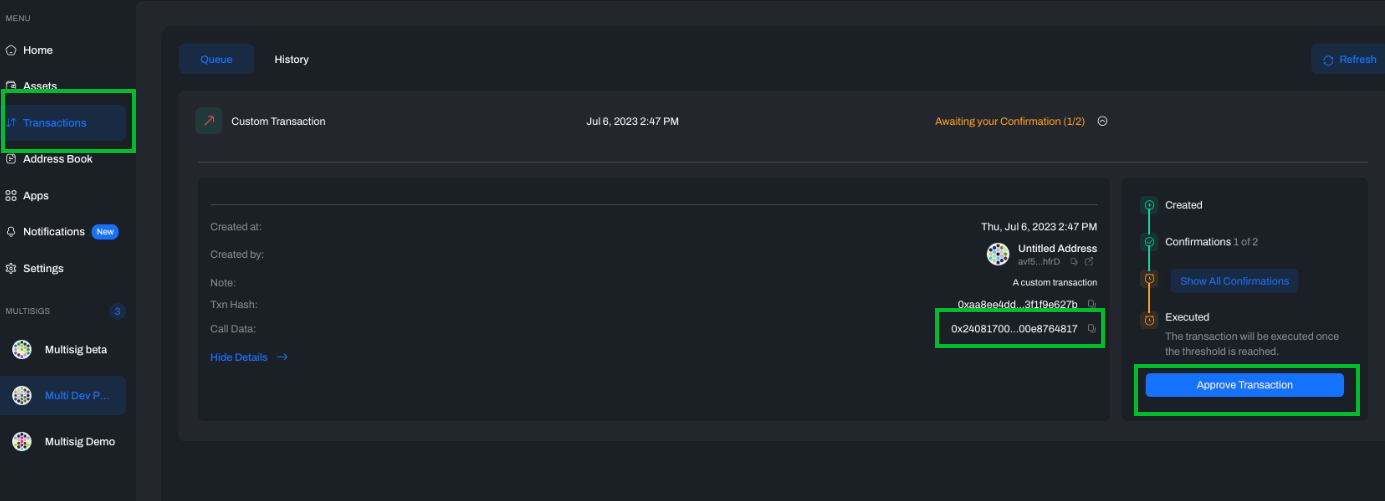 Approve on PolkaSafeand approve the transaction on PolkaSafe. You should connect to signatory accounts other than the one selected on Astar Portal;