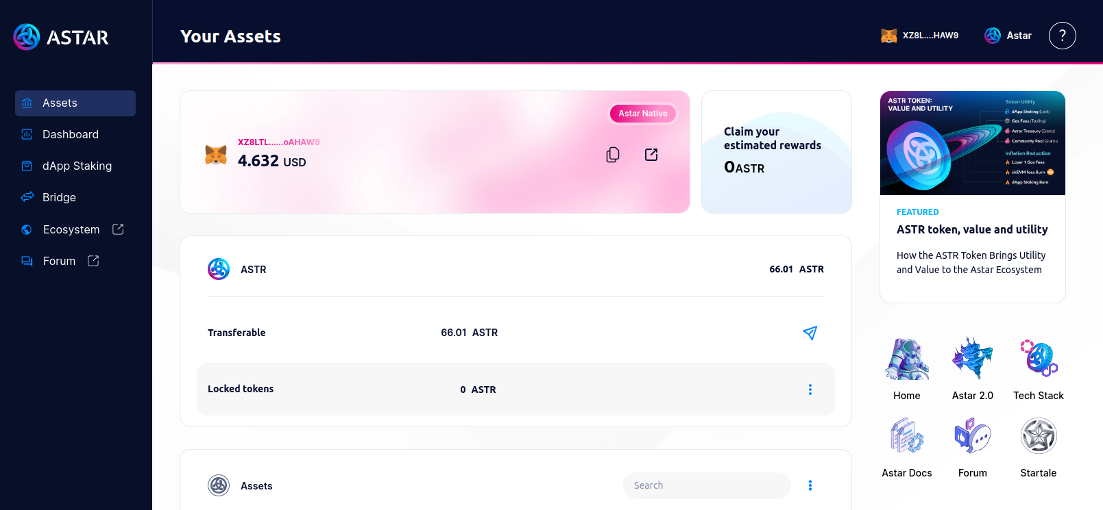 If you're not using Astar Snap version 0.9.1, please update it here before transferring your assets.