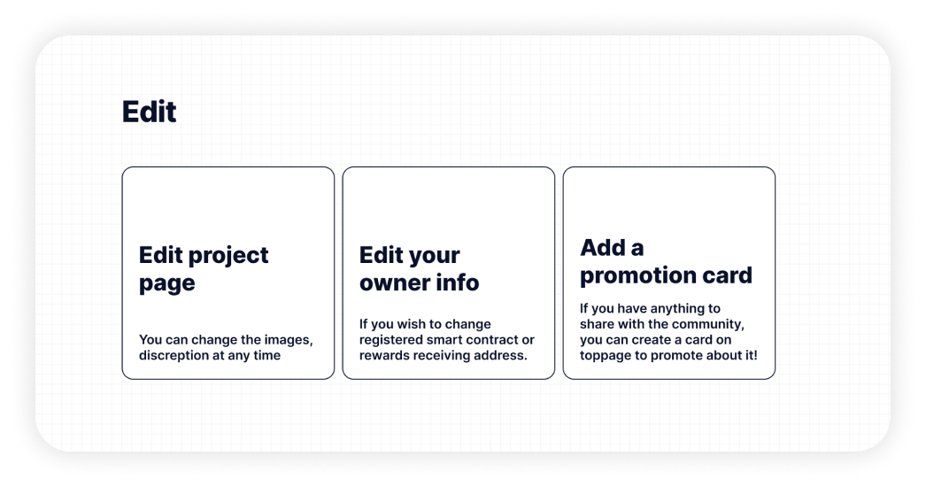 • Edit Project Page: Allows you to edit information about your dApp Staking projects;