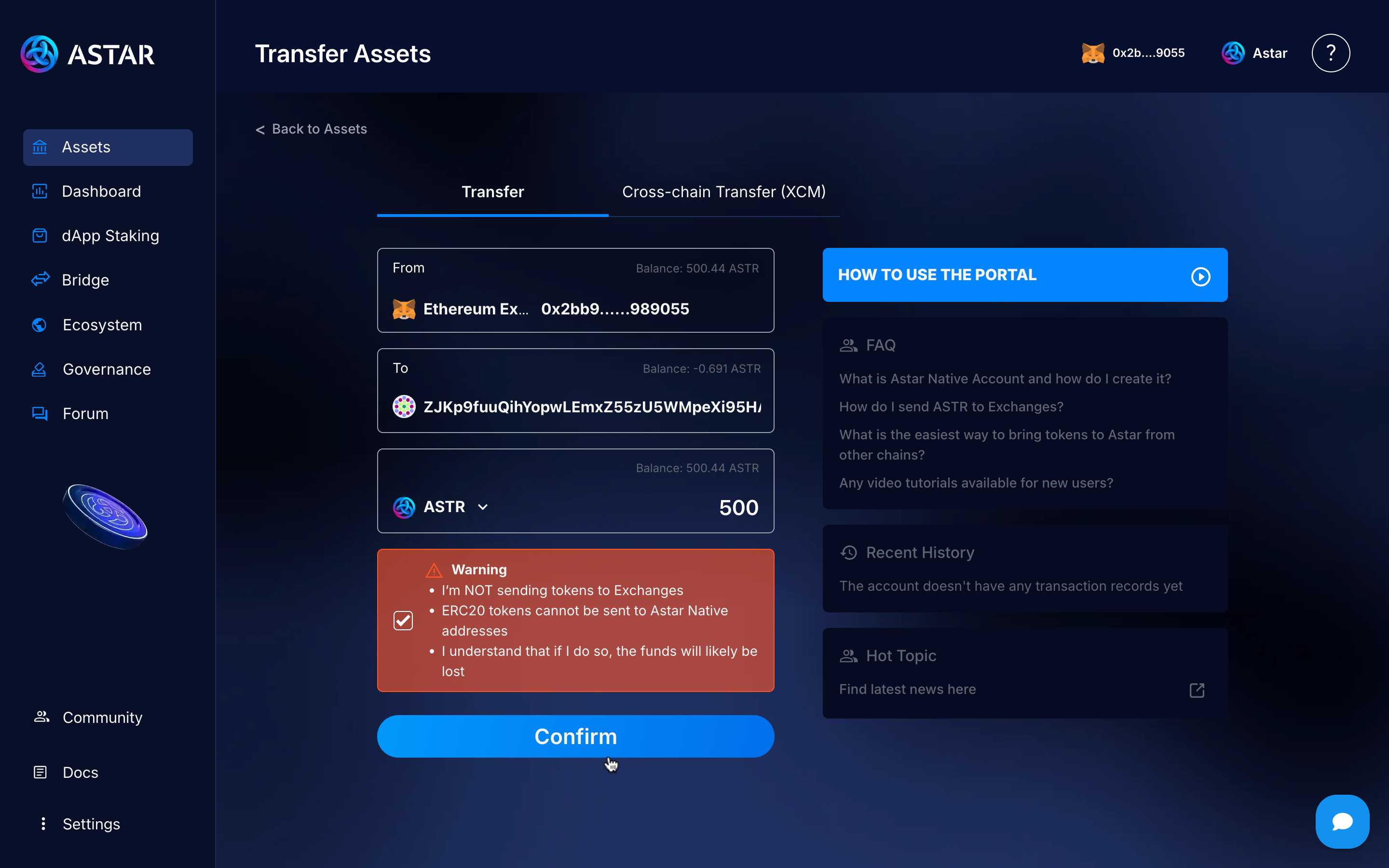 3. Make sure you’re not sending your funds to a CEX or DEX that doesn’t support Astar EVM/Substrate.