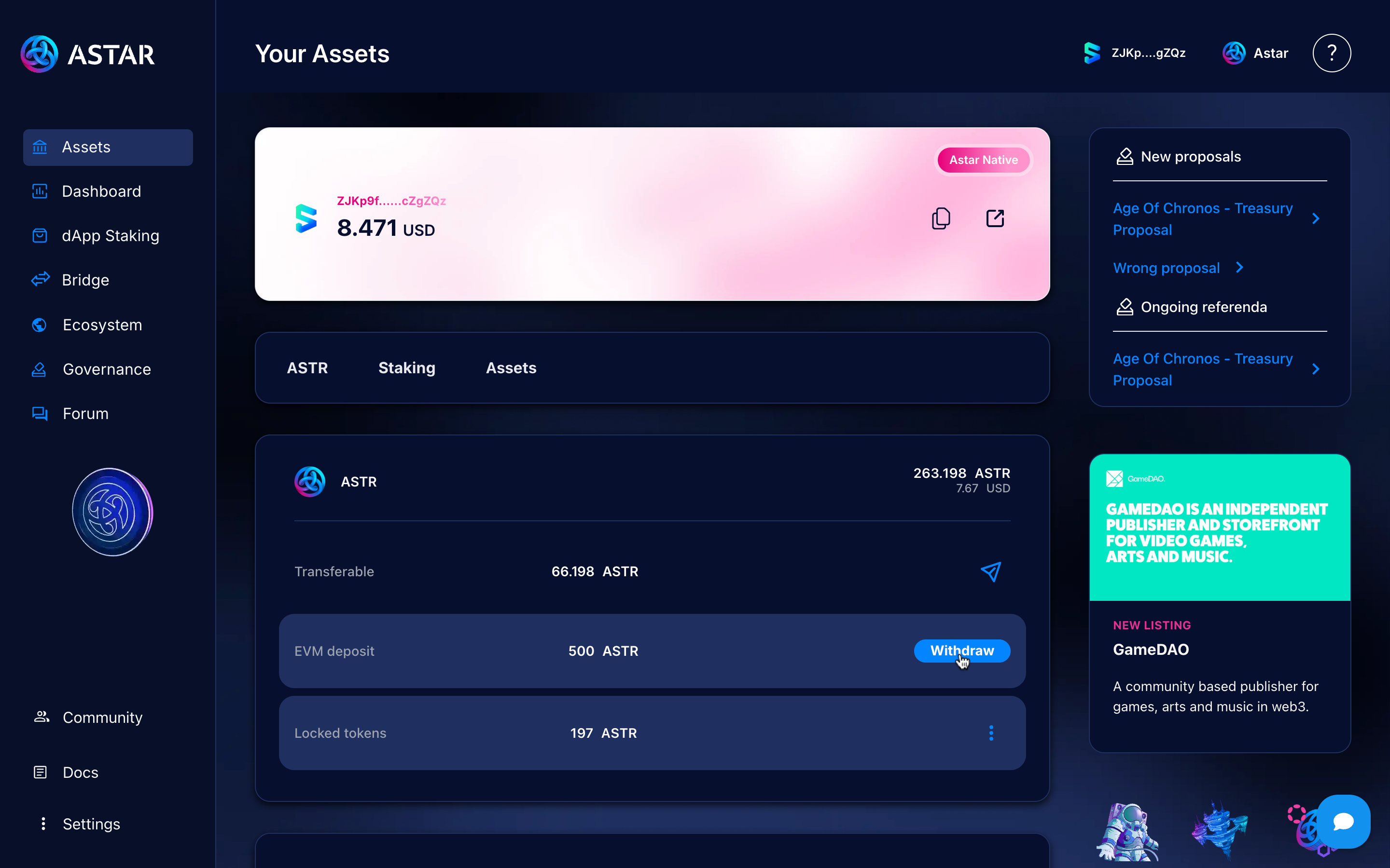 Go to our Astar Portal, the site where you can manage your funds and accounts within Astar Network.